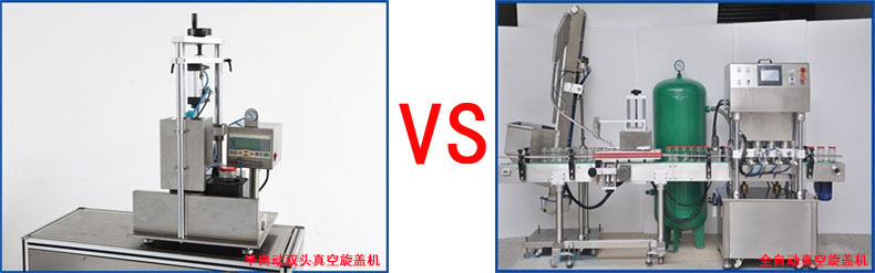 中華民族一直有這么句話叫“一山不容二虎”。沒錯(cuò),同領(lǐng)域的兩大高手一般都會(huì)互相比試一下,就如古代的周瑜與諸葛孔明。在如今,作為包裝界的兩位高手,半自動(dòng)真空旋蓋機(jī)和全自動(dòng)真空旋蓋機(jī)也就自然要有一番較量了。